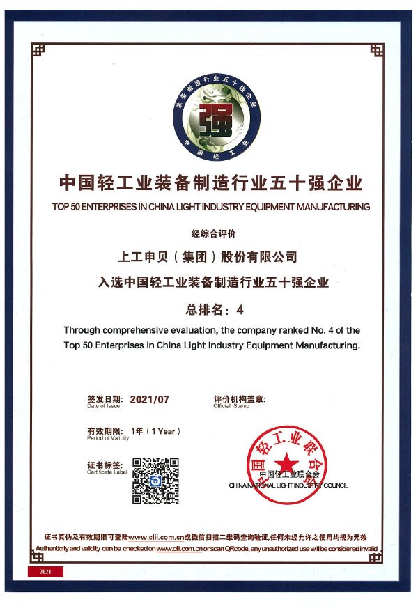 Top 50 Enterprises of Equipment Manufacturing in China Light Industry (Range 4)