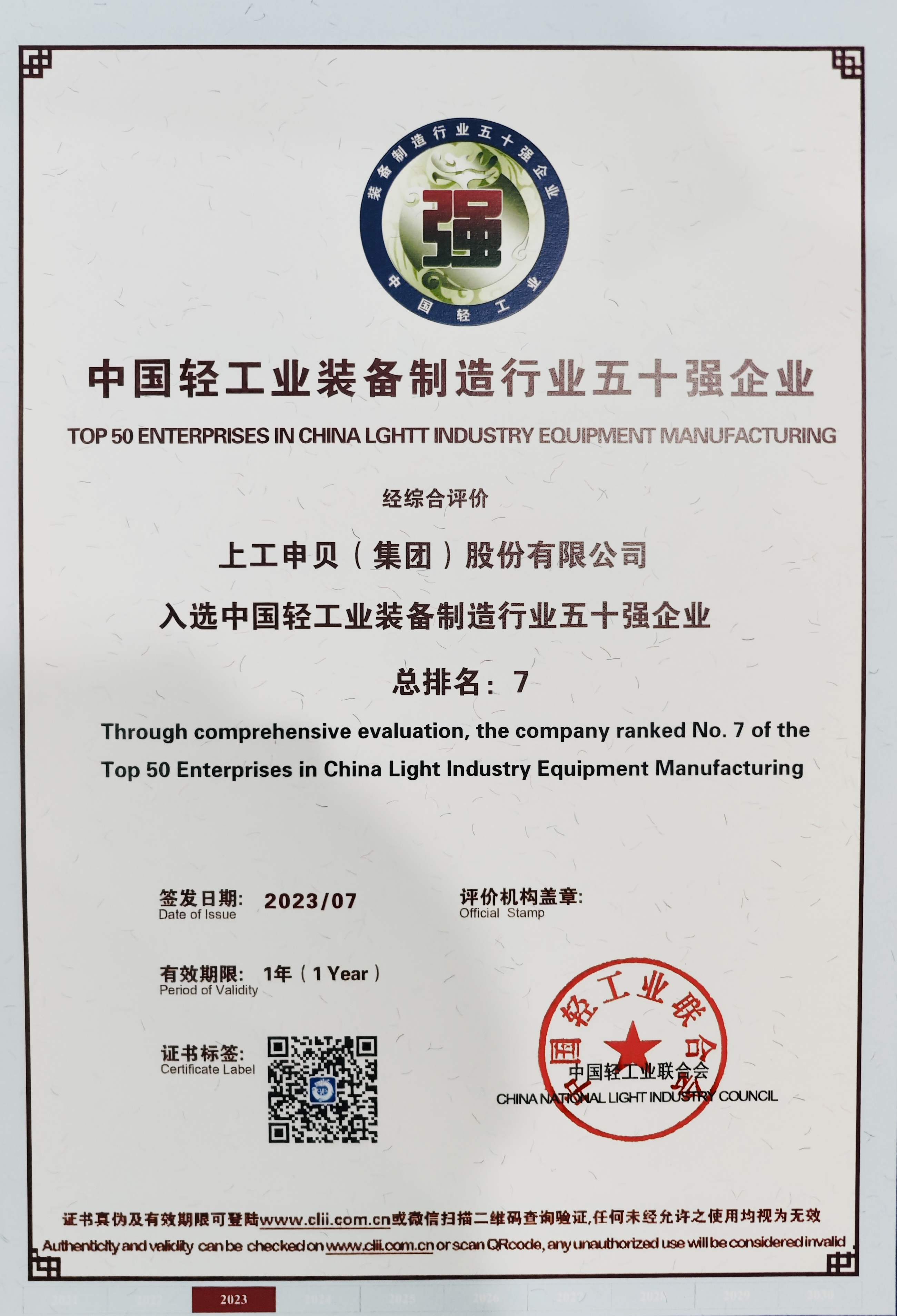 PA视讯官方网站集团入选中国轻工业装备制造行业五十强企业