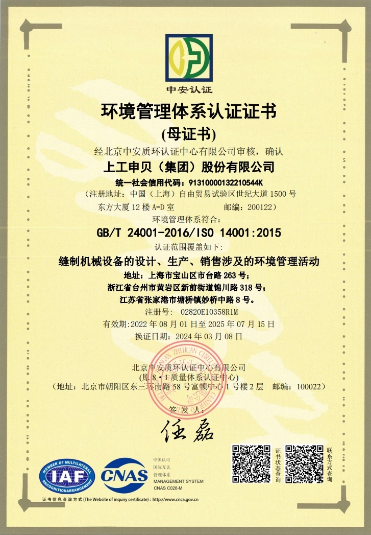 PA视讯官方网站集团环境管理体系认证证书