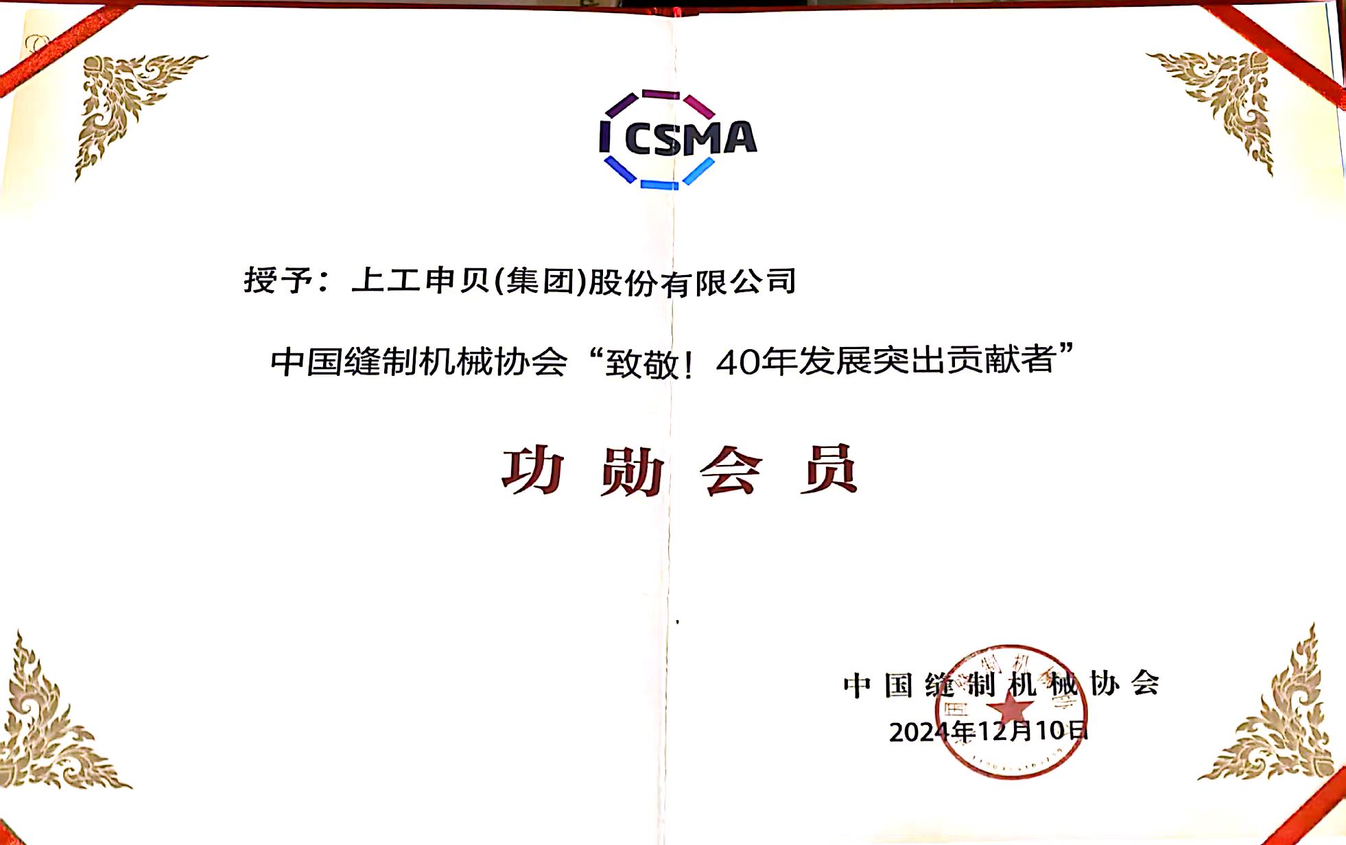 中国缝制机械协会“致敬!40年发展突出贡献者”(功勋会员)