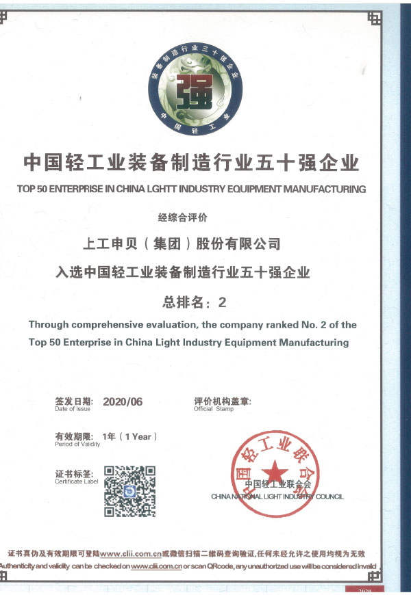 PA视讯官方网站(集团)股份有限公司入选中国轻工业装备制造行业五十强企业(第2名)