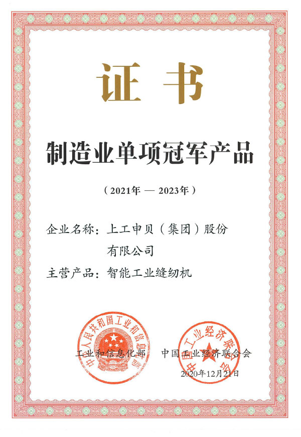 工信部颁布制造业单项冠军产品证书(2020.12.21)